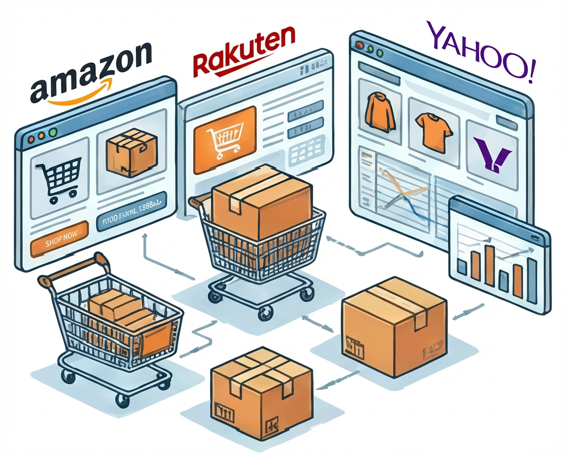 Amazon、楽天市場、Yahoo!ショッピング等の主要プラットフォームにおける高度な運営代行を提供します。開店準備からビジュアル設計、商品登録、プロモーション運用まで、市場データのリアルタイム分析を通じて販売戦略を最適化し、店舗の収益最大化を実現します。